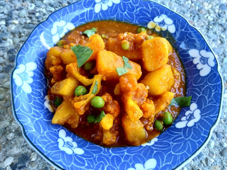 - Add cauliflower, turmeric and curry to potatoes and cook for 2 min.